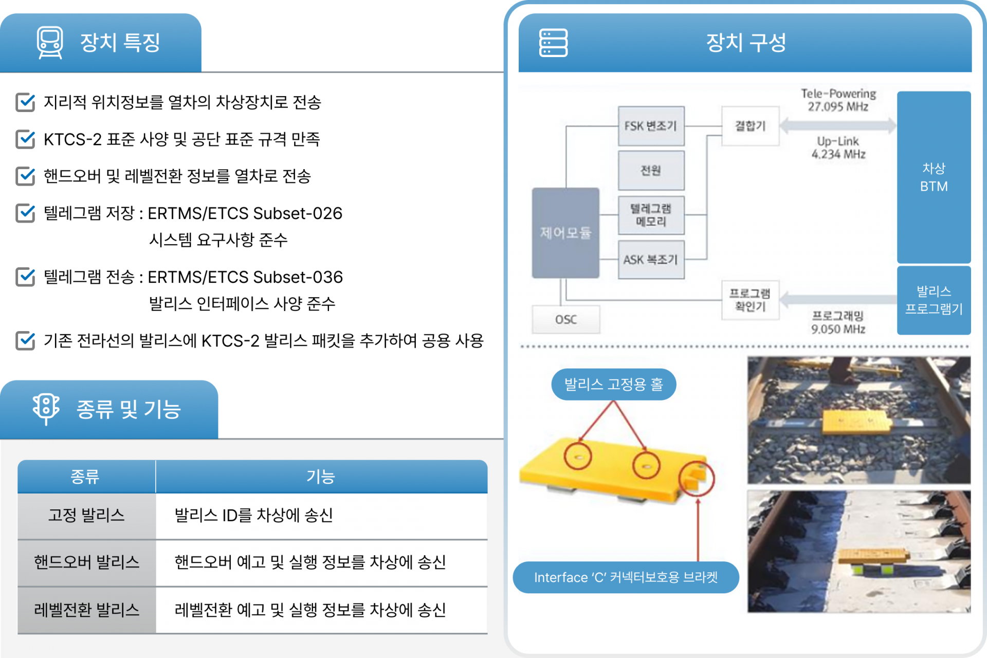 KTCS-2는 유럽표준규격인 ETCS L2를 준용하여 호환이 가능하도록 하는 국내기술로 완전 국산화한