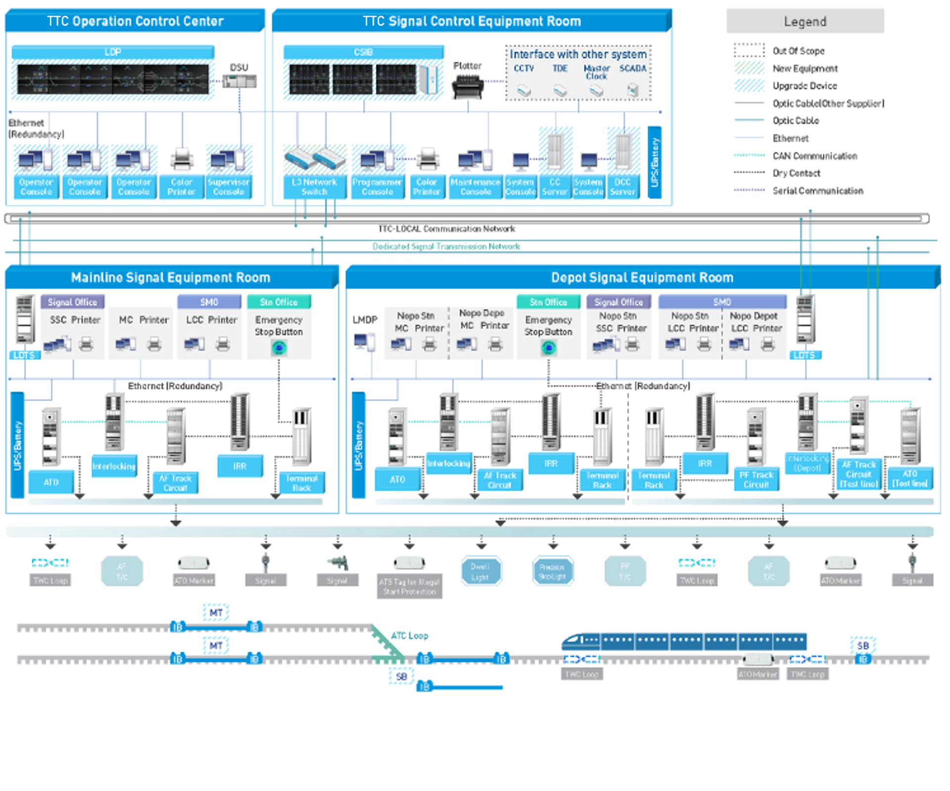 자동열차제어시스템(ATC, Automatic Train Control)은 궤도회로 또는 루프 등의 지상 전송 매체를 통해 선로조건과 진로조건에 따른 구간별 제한 속도를 연속적으로 제어함에 따라 열차의 안전한 이동을 보장하는 시스템입니다.