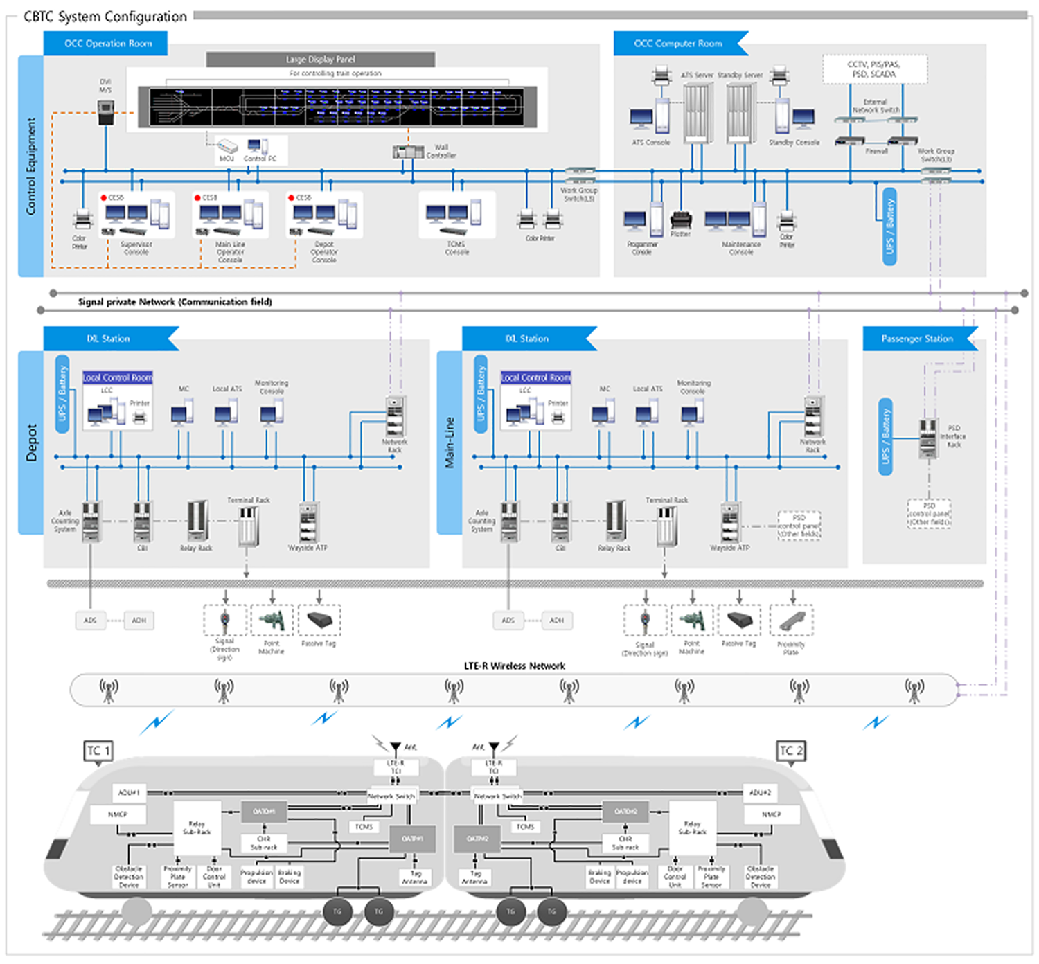 무선통신열차제어시스템 (CBTC: Communication Based Train Control)은 물리적 궤도회로 대신 통신에 기반한 고정 또는 이동폐색장치(fixed or moving block system)를 적용하였습니다.