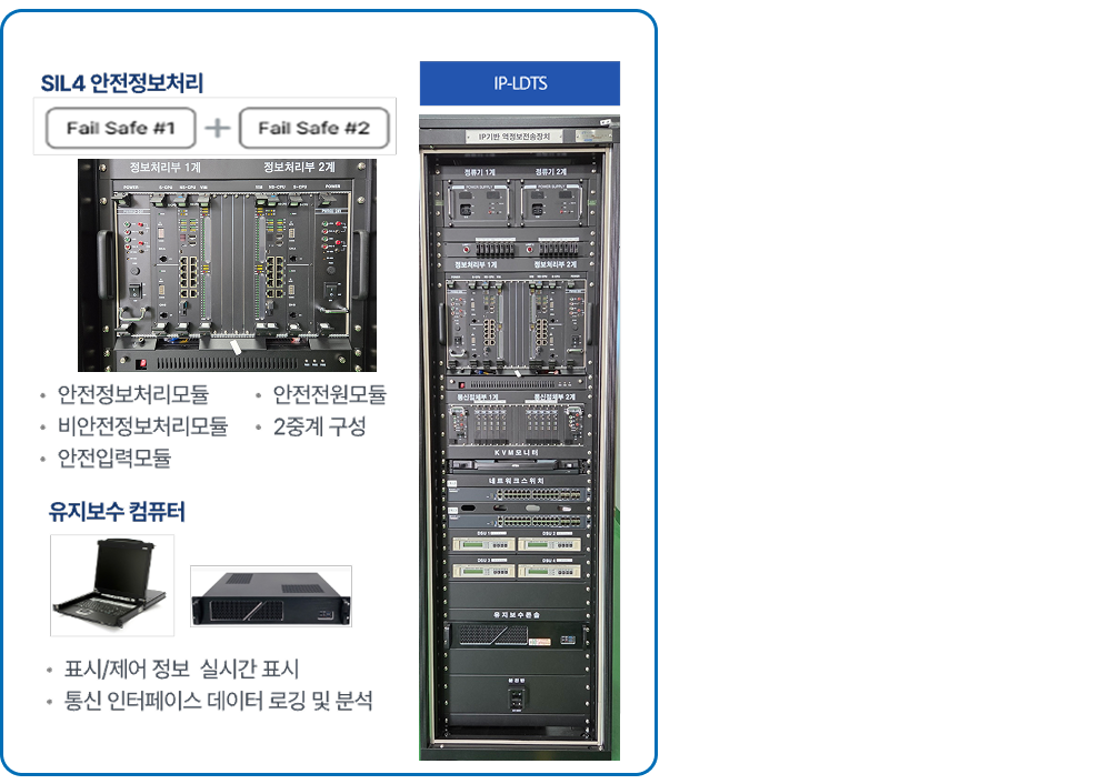 역 정보 및 주변 감시정보를 전송하는 장치로서 전자연동장치로부터 현장의 표시정보를 입력 받아 관제설비로 전송하여 열차운행 상태를 감시하도록 하고, 관제실 운영자의 현장 제어명령을 수신 받아 연동장치로 제어정보를 전송하는 기능을 담당하는 장치로 현장의 표시정보를 주변 인터페이스 설비로 전송합니다. 기존 일반선 역정보 전송장치(LDTS)와 고속선의 DTS(데이터전송장치)를 개량하여 대체하는 설비입니다.