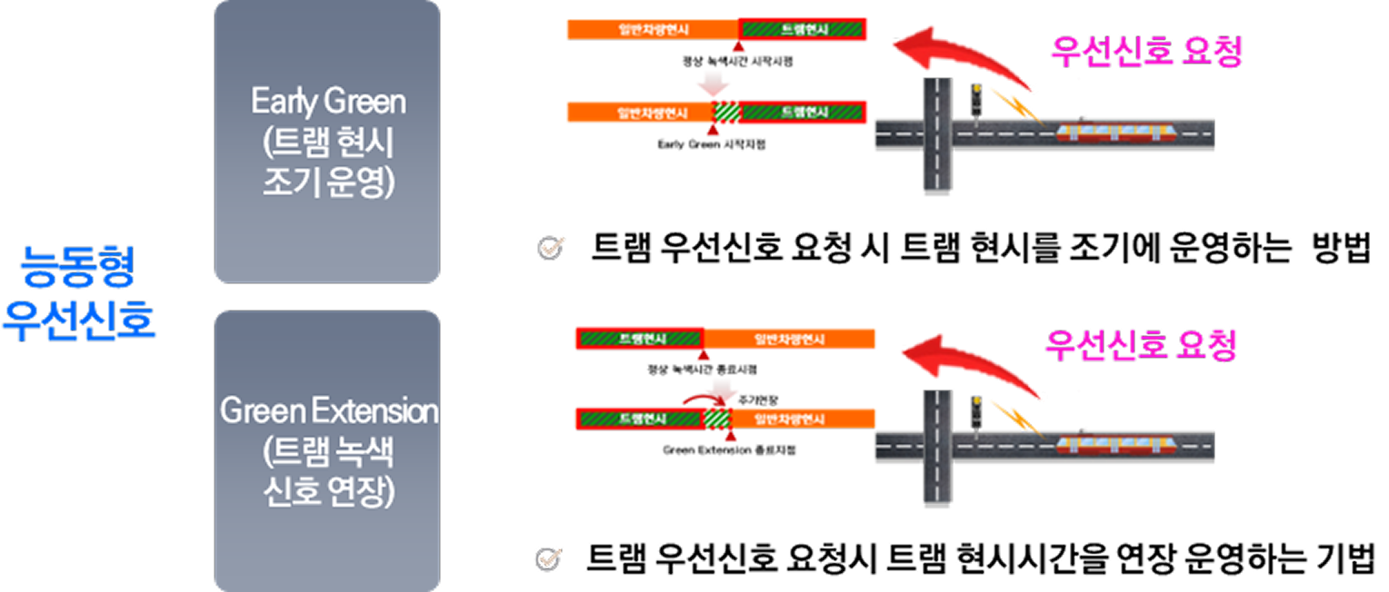 한국 교통 실정에 적합한 신호제어방식을 구축하기 위하여 철도의 열차제어시스템 개념에 교차로라는 특수개소 통과를 위한 도로교통 알고리즘을 반영한 우선신호 전략을 적용합니다.