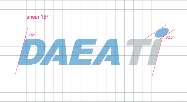 DAEATI의 기울어진 워드마크는 앞으로 나아가며 성장하는 대아티아이의 이미지를 상징합니다.