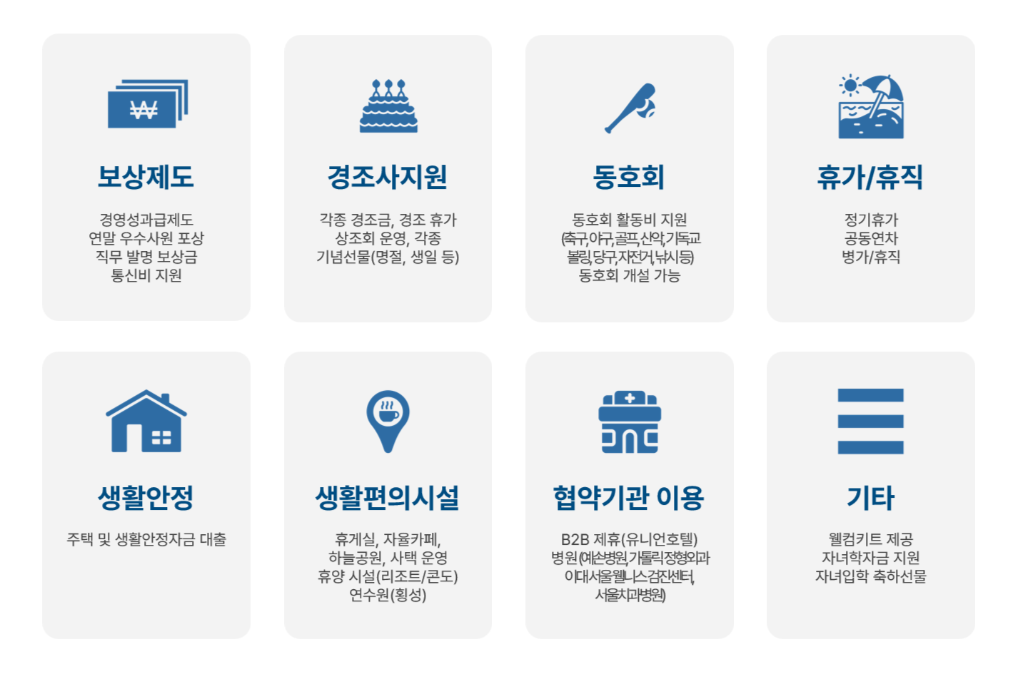 다양한 복리후생 제도를 운영하고 있습니다.